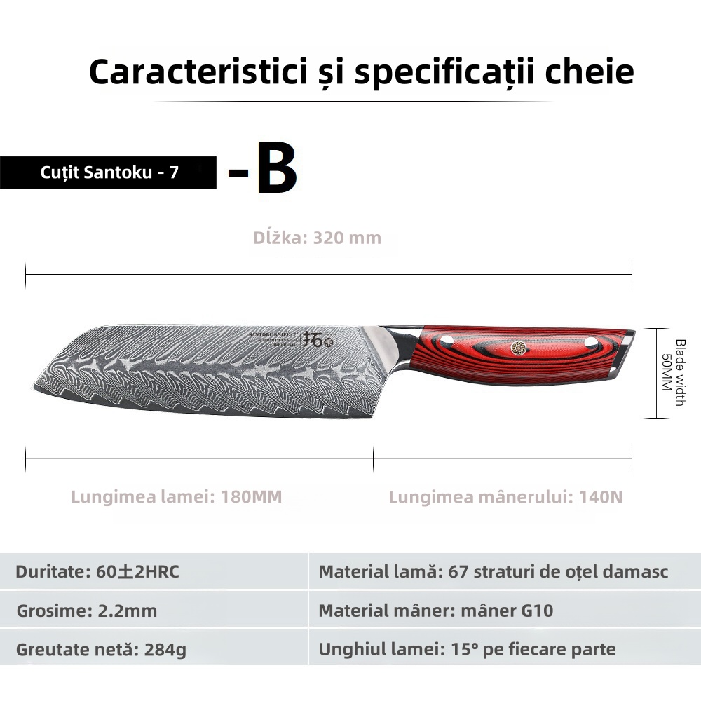 Cuțit Santoku de 7 inch - B(Designul este potrivit pentru mai multe scopuri, inclusiv felierea, felierea și felierea subțire, de unde și numele „Cuțit Santoku”)
