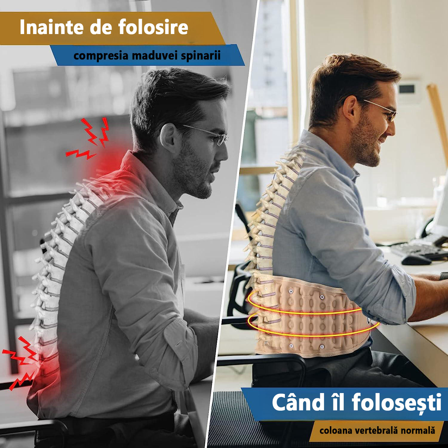Centura noastră lombară este versatilă și poate fi folosită oriunde și oricând. Preluați controlul asupra sănătății coloanei vertebrale și bucurați-vă de o viață mai activă, fără dureri de spate.
