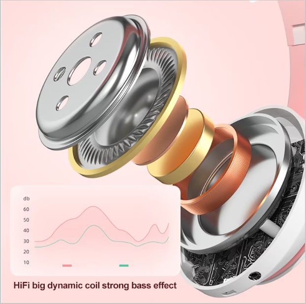 Casti wireless pliabile, Urechi de pisica, Bluetooth 5.0, Handsfree, HiFi, Bass Stereo, LED, TF, Alb/Roz